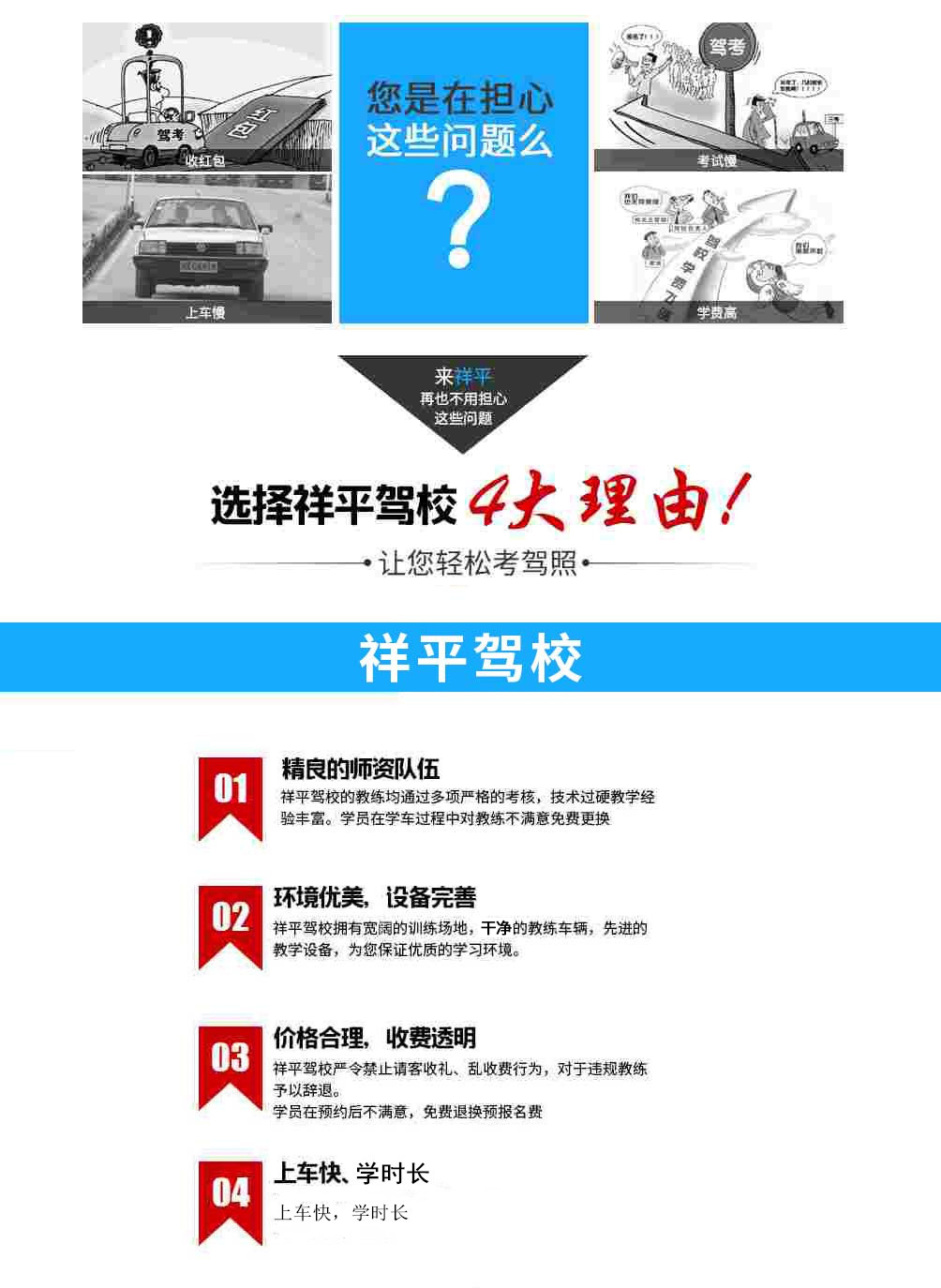 有學(xué)車打算的朋友,以及正在學(xué)車的學(xué)員,來(lái)祥平駕校學(xué)車,希望你不只是學(xué)會(huì)應(yīng)試技巧,而是掌握一些開(kāi)車的必備技能,這樣才能在...